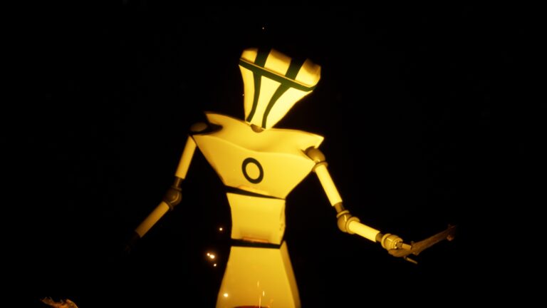 La nuit tombée, Chef ordonne au robot de préparer un feu de camps au sommet d’une colline. Le pilote s’assoit et scrute chaque geste de la machine jusqu’à ce que les premières flammes apparaissent. Tous deux se font silencieusement face pendant un long moment.