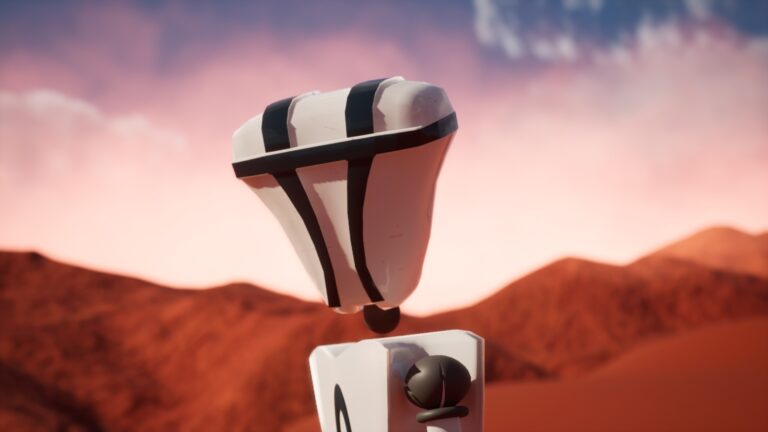 Puis il s’élance à toute vitesse vers l’unique espoir qui lui reste : La lointaine silhouette sur les collines verdoyantes. Il sait qu’il doit maintenir une endurance sans faille pour atteindre son but avant que le robot ne parvienne à se libérer et qu’il ne le rattrape. Les yeux grands ouverts fixés sur son objectif, Chef adopte rapidement la posture optimale pour son marathon. Bien que la peur d’échouer le fasse paniquer, il amorce sa fuite à grandes foulées complétées par un souffle profond et régulier.