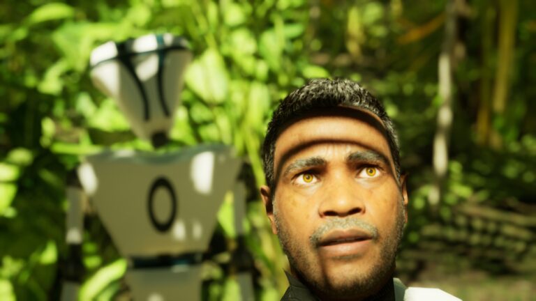 Les pieds embourbés dans la terre quasi marécageuse de la forêt tropicale, Chef lutte contre l’idée de ne parvenir à trouver une issue à ce piège artificiel qu’est la simulation. La pénibilité du chemin et les efforts fournis pour le parcours lui coûtent davantage à chaque instant. Une détonation lointaine interrompt brutalement Chef dans ses pensées. Il regarde le ciel et aperçoit le tracé d’une fusée éclairante. Robot rejoint Chef, encore médusé par l’apparition.
